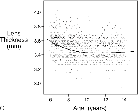 ACD, anterior chamber depth; LT, lens thickness; AL, axial length. Reprinted from Wood ICJ, Mutti DO, Zadnik K: Crystalline lens parameters in infancy, Ophthalmic Vis Sci 16: 310, 1996; with permission from Elsevier Science Ltd. The Boulevard, Langford Lane, Kidlington. OX5 1GB, UK.