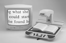 to illuminate the material, and a video display monitor.3,8 The CCTV user moves the camera or printed text systematically to scan