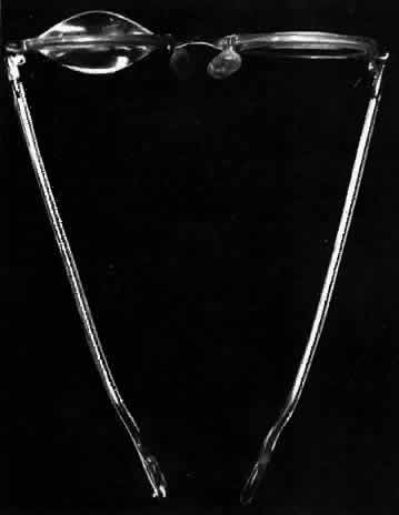 The proper use of a conoid aspheric spectacle lens for subnormal vision necessitates that the spectacle frame be so adjusted that the lens is centered directly in front of and close to the eye, with its optical axis coinciding with the line of sight of the eye when the eye is directed forward for reading or close work. Pantoscopic tilt of the spectacle frame and lens should be minimal or absent to permit the reading material, which must be perpendicular to the optical axis of the lens, to be brought into the anterior focal plane of the lens (assuming no accommodation of the eye). Generally the reading material is maintained in the focal plane and moved laterally to bring new material successively into the field of view. Should the head be rotated during reading, the plane of the reading material becomes tilted with respect to the optical axis of the lens and it is, therefore, impossible for the reading material to remain in focus across the field of view. At the same time the distance from the lens to the reading material tends to become increased with head turning, resulting in blurred vision. |
