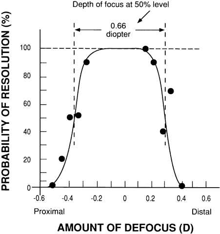 of focus. For average pupil sizes, a 20/25 (6/7.5) high-contrast target