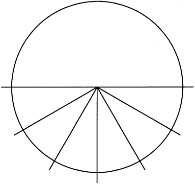 Comments The best type of diagnostic lens to use is a spherical PMMA lens; this type of lens does not flex on a highly astigmatic cornea. If a gas-permeable lens is used, flexure may occur, resulting in an incorrect overrefraction. Also, refract with the room lights on to constrict the pupils; otherwise, the patient actually may see around the lens during fitting because the diagnostic lens may ride eccentrically. During fitting, the cylindrical axis of the overrefraction should line up with the K readings within 10°; otherwise, the astigmatism is oblique, and the lens cannot be made by standard laboratory techniques. Note that the first number of the optical cross is added to the column of the flatter meridian; thus, the final lens always should have the most plus or least minus at the flatter meridian. These lenses do not work on corneal astigmatism less than 1.50 to 2.00 D because they rotate. They can be made in gas-permeable material with up to 10 D of toricity. FRONT TORIC Front toric rigid lenses are indicated when the patient has a spherical cornea and residual astigmatism.21–23 Front toric rigid lenses have a spherical back surface and contain a cylindrical correction; this correction is kept in proper alignment by the use of a prism ballast in the contact lens. Prism ballast acts as a weight to hold the lens in position. Fitting Method This fitting method begins with the same steeper than K method explained previously for spherical RGP lenses. The diameter is determined first. Next, the CPC is chosen based on the diameter. For a diameter smaller than 9.0 mm, CPC is 0.50 D steeper than K or one half of the astigmatism steeper than K, whichever is steeper; for a diameter larger than 9.0 mm, CPC is 0.25 D steeper than K or one fourth of the astigmatism steeper than K, whichever is steeper. Power then is determined by refracting over a diagnostic prism ballasted contact lens, with a dot indicating its base. The overrefraction is converted to minus cylinder form, and the spherical power for the final lens is calculated by adding the spherical part of the overrefraction (in minus cylinder form) to the sum of the diagnostic lens CPC and power and subtracting the CPC of the final lens. The orientation of the cylindrical portion of the refraction is corrected for lens rotation by using the acronym LARS: left, add, right, subtract. For each clock hour of rotation, 30° either is added or subtracted from the refractive axis (Fig. 12). For instance, in Figure 13, a lens is seen to rotate to the 7-o'clock position. This rotation is one clock hour to the practitioner's left. Thus, 30° is added (left, add) to the refractive axis.