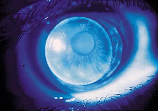 Thus, we would order a lens of CPC 41.25 D and power -2.00 D. By using this concept of a constant, one avoids the use of the SAM FAP rule. This calculation automatically takes tear lens correction into account. In addition, this example demonstrates that any diagnostic lens can be applied to establish the precise power of the final lens. However, if the overrefraction is greater than -4.00 D or + 4.00 D, it should be corrected for vertex distance. While the diagnostic lenses are on the patient's eyes, you should examine them for fit, assuming that their CPCs are close to those of the final lenses. Well-fitting lenses are drawn upward by a blink, fall rapidly to the central cornea, and slowly drift downward. Patients with large pupils may require larger lenses to prevent them from looking through the lens periphery in the dark. Patients with large amounts of corneal astigmatism (more than 3 D) or residual astigmatism may require a toric lens. AVOIDING PROBLEMS Many rigid lens problems are caused by poor blinking.14–16 The normal blink rate is once every 5 seconds. People tend to blink less frequently when reading, studying or otherwise concentrating on something, playing video games, working at computers, looking through microscopes, when fatigued, or when drinking alcohol. In addition, at certain times, tears may evaporate, causing problems, such as while sailing or skiing or while in an automobile with the air conditioning running. Before dispensing rigid lenses, make sure they have been inspected for diameter, CPC, and power, and that all specifications are correct. The patient should be wearing the lenses 8 hours per day before you should consider making major changes in the lens specifications. In other words, give the eye time to adapt to the lens (decreased corneal sensation and decreased tearing). |
