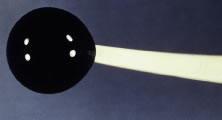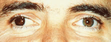 We have significant experience with this lens with reasonably good results. Although the lens does not correct the color defect, it does permit patients to make a discriminatory judgment of color. During the initial patient evaluation, it is very helpful to use a trial lens to evaluate effectiveness. Patients can often improve their results in the Ishihara plates from properly identifying 1/15 plates to identifying 10/15 to 13/15 correct plates. Proper color discrimination is very important in numerous professions such as: electrical engineers, uniformed forces, artists, painters, printers, decorators, and all those professions in which color discrimination is important. A word of caution to patients wearing the X-Chrom lens: This lens has detrimental effects on space localization of moving objects and other aspects of binocular vision. Persons operating moving vehicles wearing a tinted lens over one eye may experience hazardous distortions of the positions of perceived objects and may, therefore, be dangerous drivers in certain circumstances. Conservative judgments are justified until the extent of the hazards is better understood. Ideal lens fitting involves special attention to avoiding excessive lens movement and decreasing lens thickness to improve visual results. Otherwise, techniques used for fitting any other conventional rigid lens should be applied. Motivation is quite important because the lens may be cosmetically undesirable (bright red lens in only one eye) and there is an adaptation period that the patients must undergo. The use of bright ambient light is highly recommended to maximize results. THERAPEUTIC USES OF PAINTED LENSES Painted contact lenses have a variety of uses: cosmetic, therapeutic, handling, and informational. Although a valuable tool in total patient care, the therapeutic use of tinted lenses is, unfortunately, not often considered. There are several basic categories or types of painted lenses that can be obtained, considering that multiple variables can be incorporated into any of these lenses. As a general rule, soft (hydrophilic) lenses are used for painting in therapeutic lenses (although rigid lenses may be used rarely). The broad categories of tints include: translucent (Fig. 13); opaque (iris) (Fig. 14), with or without pupillary opening; clear or black pupil; clear lens with black pupil only (Fig. 15), totally black (occluder) (Fig. 16) lens, and others. Although some lenses are commercially available (with predetermined colors and options), others are custom made for each patient. The type of lens chosen for each patient will be dictated by the patient's needs and desires. As a general rule, custom made lenses will be more costly and take longer to obtain but usually accomplish a better cosmetic result and, therefore, greater success. Painted lenses can be obtained with or without refractive power, depending on the patient's needs. Indications for the use of therapeutic painted lenses include: covering corneal scars, creation of a pupil, pupillary occlusion, diplopia, heterochromia, phthisis, amblyopia, aniridia, and photophobia. While evaluating a patient for a painted lens, we must take into consideration not only the obvious cosmetic or clinical deformities but also the patient's realistic needs, desires, and expectations. It could be quite frustrating if unrealistic expectations are set or the patient's needs are not met.