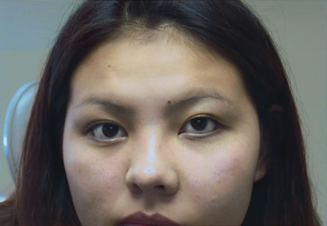 | Mandibulofacial dysostosis (Treacher Collins syndrome, Franceschetti syndrome) is a bilateral, autosomal dominant condition that results from abnormal development of structures derived from the first and second branchial arches (Fig. 16). The genetic defect for Treacher Collins syndrome, TCOF1, has been isolated to chromosome 5, and the gene product, treacle, has been identified as a nucleolar protein.17,18 The exact function of treacle, however, has not yet been determined. The craniofacial anomalies include hypoplasia of the maxilla, mandible, and zygoma associated with a variety of soft tissue malformations. These malformations include underdevelopment of the midfacial musculature, lower eyelid colobomas, inferior displacement of the lateral canthi (antimongoloid slant), inferior punctal agenesis, and blepharoptosis. Additional ocular anomalies may include high myopia, dermolipoma, lens subluxation, and secondary glaucoma.19 |