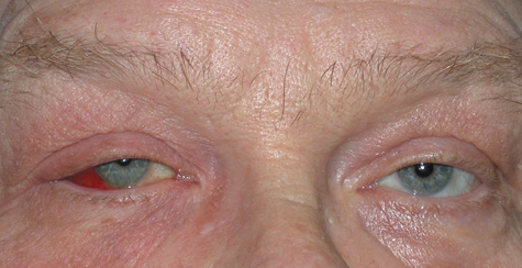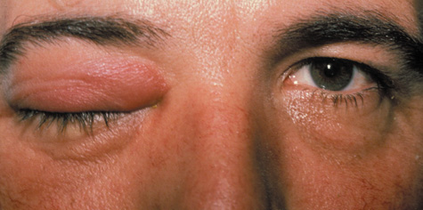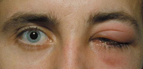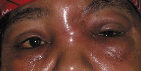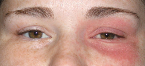 Fig. 1. Preseptal cellulitis in a 32-year-old woman. Swelling developed over 3 days. Motility was preserved.