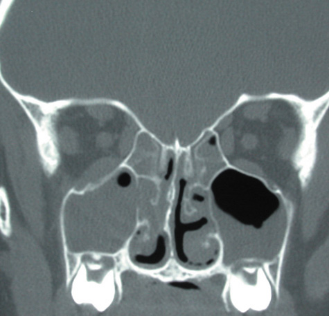 However, all orbital cellulitis resulting from sinus disease is not secondary to acute sinusitis. Orbital fracture can spread existing chronic sinus infection into the orbit (Fig. 2).25,31–33 Mucoceles, slowly enlarging mucus-filled cysts within the sinuses that enlarge by pressure erosion of adjacent orbital and intracranial structures, can become infected and result in mucopyoceles that cause both cellulitis and abscess formation.34–37