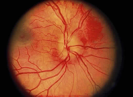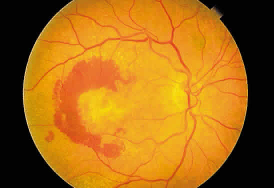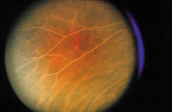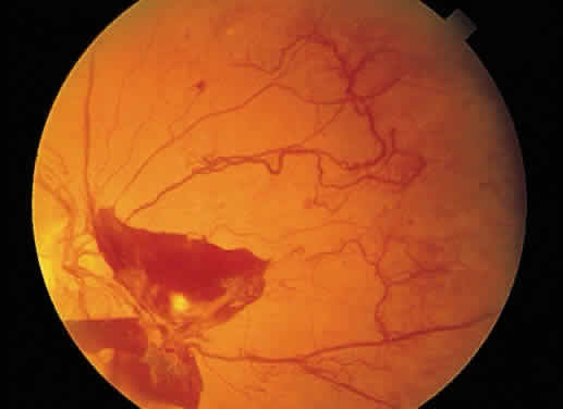 shape of the hemorrhage. Fresh hemorrhage on the retinal surface appears bright red, whereas fresh hemorrhage