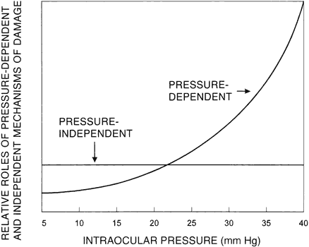 The definition of glaucoma has changed considerably over the past several decades. The disease is no longer defined as elevated intraocular pressure (IOP) but rather a condition comprising characteristic optic nerve head and visual field abnormalities that are frequently associated with IOP in the high-normal or elevated range.1 Major risk factors for the development of glaucomatous optic nerve damage include the level of IOP,2–5 increasing age,6 black race,7 and positive finding for the condition in the family history.8 IOP remains the only risk factor readily amenable to therapy; therefore, almost all currently used strategies for the treatment of glaucoma are aimed at lowering or preventing a rise in IOP.
