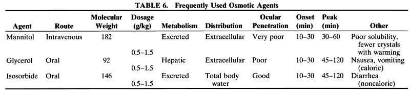 591. Barry KG, Khoury AH, Brooks MH: Mannitol and isosorbide: Sequential effects on intraocular pressure, serum osmolality, sodium, and solids in normal subjects. Arch Ophthalmol 81:695, 1969