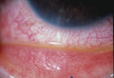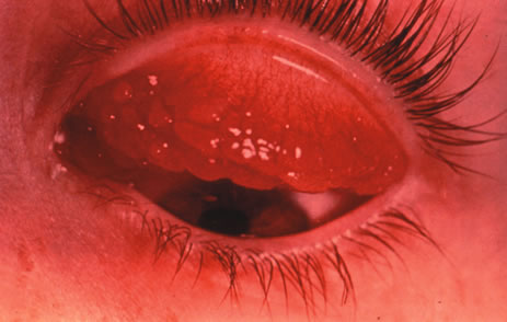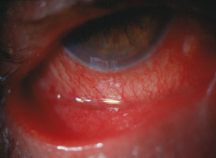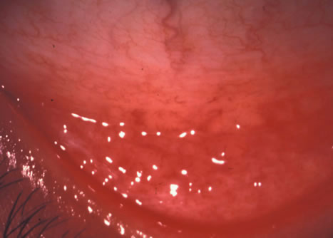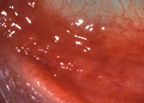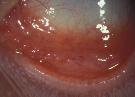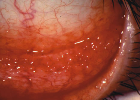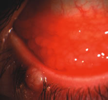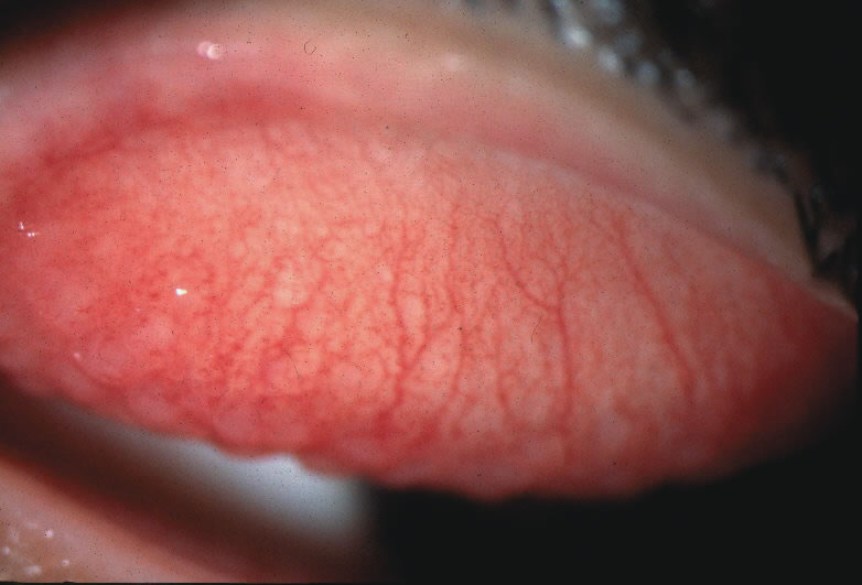 Fig. 3. Papillary conjunctivitis. Numerous fleshy injected papillae appear on the upper tarsus.