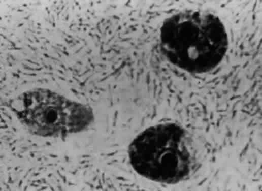 Deep linear intrastromal infiltrates beginning in the paracentral cornea and extending to the limbus in a radial pattern also have been described as highly characteristic for Acanthamoeba keratitis.32 These clinical observations may represent combined infiltration and inflammation of the terminal corneal nerve endings by Acanthamoeba organisms. Possibly, this radial keratoneuritis explains the occurrence of severe ocular pain as well as decreased corneal sensation in these patients. Other findings in Acanthamoeba keratitis may include iritis, hypopyon formation, increased intraocular pressure, cataract formation, and sclerokeratitis.3,31,33 The anterior scleritis is usually adjacent to the area of corneal infiltration and may have a nodular component.31 Acanthamoeba keratitis is often mistakenly diagnosed as herpes simplex or fungal or bacterial keratitis. Thus, one must maintain a high index of suspicion for Acanthamoeba when caring for patients diagnosed with these other types of keratitis, especially when there is a prolonged clinical course or poor response to treatment. Although the numerous signs and symptoms associated with the diagnosis of Acanthamoeba keratitis by themselves are not specific, in combination they present a rather characteristic clinical picture. Careful attention to the patient's history, as well as recognition of the chronic and varied anterior segment findings make the diagnosis less elusive. With employment of recommended laboratory techniques, a definitive diagnosis can be obtained and appropriate therapy instituted. |