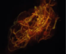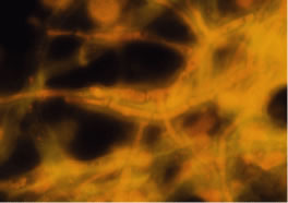The precise events that follow adherence of fungi to the corneal epithelium or exposed deeper structures and replication of the organism to produce keratitis have not been defined. The intrinsic virulence of fungi relates to their ability to proliferate within corneal tissue, resist host defenses, and produce tissue damage.25 Filamentous fungi proliferate within the corneal stroma without release of chemotactic substances, thereby delaying the beneficial, inhibitory phases of the host response. Filamentous fungi multiply by apical hyphal extension, whereas yeast multiply by budding or transformation from the blastophore to the pseudohyphal phase. The large size of the true hyphae of filamentous fungi and pseudohyphae of yeasts precludes complete ingestion by neutrophils and macrophages. Certain fungi secrete enzymes that degrade organic substances into soluble nutrients, which are passively absorbed or actively transported into the cell. Candida albicans contains a phospholipase A and lysophospholipase on the surface of blastospores, which may aid invasion of tissue. Similar mechanisms probably account for the ability of Fusarium solani and other filamentous fungi to ramify within the corneal stroma and penetrate Descemet's membrane. Fungi also release various toxic substances, including proteases, hemolysins, and exotoxins. The role of mycotoxins in the pathogenesis of fungal keratitis has not been determined. Comparable to the pathogenesis of other forms of infectious microbial keratitis, the host response contributes to stromal destruction by release of lysosomal substances from polymorphonuclear leukocytes and other substances through a cascade of complex reactions.