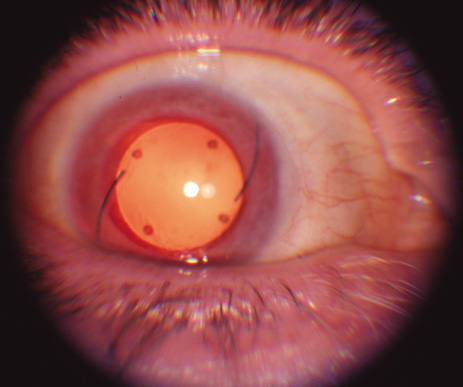 Fig. 4. Retroillumination of the iris in an older patient with OA who had undergone cataract extraction and intraocular lens implantation. The outline of the lens is clearly visible.