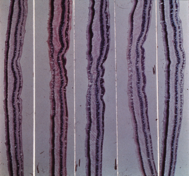 Fig. 9. Sections through the center of the anatomic location of the fovea reveal no foveal pit. (Reprinted from Ref. 51.)