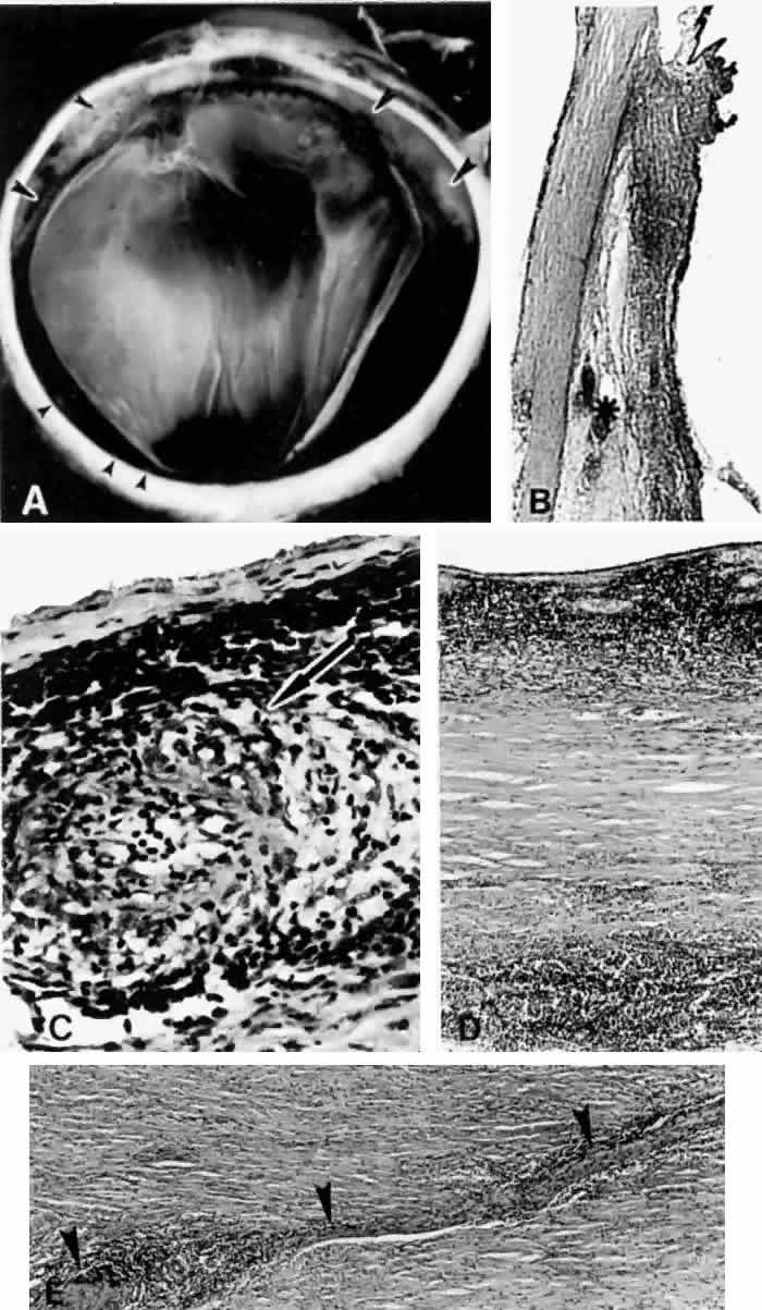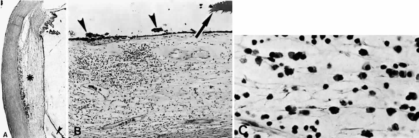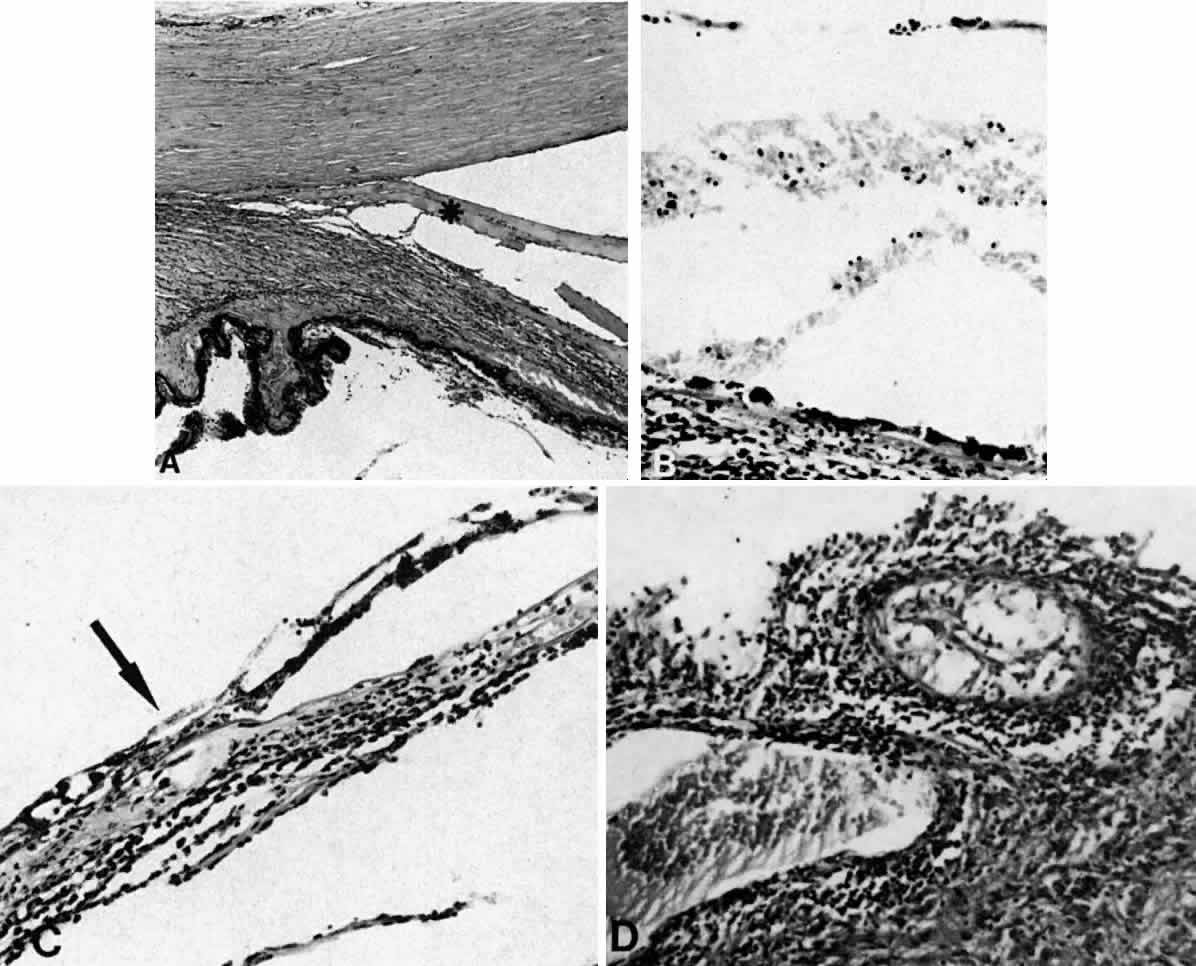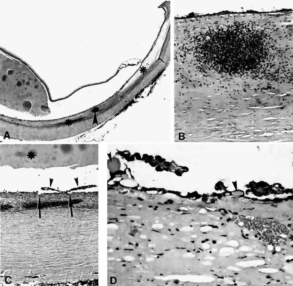 Histopathologically, there is a variable lymphocytic infiltrate in the ciliary body and choroid (see Figs. 19 and 20; Fig. 21).96 |
