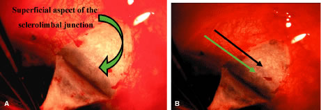 In the postoperative period, a diagnosis of suprachoroidal expulsive hemorrhage can be made simply on the basis of the history provided by the patient. The typical history is the sudden onset of excruciating pain, often following coughing, sneezing, straining at stool, or some other activity that increases the venous pressure. Postoperatively the eyes that are most predisposed are those that have had a significant elevation of IOP for a long period and then become hypotonous. Bleeding into the suprachoroidal space at the time of surgery, or later, characteristically produces a partially or totally flat anterior chamber and usually severe pain. The IOP will vary depending on the amount of residual aqueous filtration and the extent of the hemorrhage; it can range from low (5 mm Hg) to high (50 mm Hg). Suprachoroidal hemorrhage can occur at the time of surgery or spontaneously after surgery. At the time of surgery, it is recognized by the sudden development of positive pressure with extrusion of intraocular contents, the appearance of a dark swelling in the fundus of the eye, and a rapidly enlarging choroidal detachment. The immediate management of suprachoroidal hemorrhage involves first closing the eye. Intravenous acetazolamide and/or mannitol are given to try to lower the IOP. Additional sutures are placed in the incision to make a watertight closure. Attention is then directed towards returning the eye to as healthy a condition as possible. This will take time and is assisted by the IOP-lowering effect of the acetazolamide and the mannitol. A viscoelastic is injected into the anterior chamber, the iris is reposited, and vitreous is meticulously removed from the incision. It is best not to attempt a large vitrectomy, and it is best not to drain the suprachoroidal hemorrhage. The goal is to ensure the closure of the eye and meticulous closure of the incision. Postoperatively, the patient is managed with cycloplegics, steroids, and antihypertensive agents to maintain the IOP in a satisfactory range. The IOP will usually fall spontaneously within several days. It is best to avoid draining the suprachoroidal fluid if possible. However, if pain is excruciating and unremitting or the suprachoroidal hemorrhage so extensive that the retinal surfaces are touching (“kissing choroidals”), then drainage of the hemorrhage is appropriate. If possible, it is preferable to wait until the fourth postoperative day, by which time the clot will have lysed and draining the hemorrhage is facilitated. The technique of drainage is essentially as the same as for a choroidal detachment, although the incision into the sclera may need to be larger. It is important to resist the temptation to try to grasp the clot and pull it out. It is not possible to distinguish between the clot and the choroid. If bleeding has occurred into the vitreous, meticulous vitrectomy with removal of the vitreous and the intravitreal blood is nearly always required to prevent a later retinal detachment. Bleeding Into the Anterior Chamber Bleeding into the anterior chamber is common, especially when the IOP is lower than the pressure in the episcleral veins. Thus, until the IOP rises to approximately 12 mm Hg, it is not unusual to see a hyphema. Only rarely does this hyphema require drainage. If more than 50% of the chamber is filled with blood, it usually is necessary to wash it out. It is important to keep the blood from the area of filtration so that it does not predispose the patient to loss of a functioning fistula. Thus, the patient should be instructed to maintain a posture that will keep the blood out of the fistula. If the pressure rises and remains in the anterior chamber, the situation becomes more serious. Blood staining can result. Drainage of the blood and revision of the guarded filtration procedure may be needed in these cases. Bleb Infection Approximately 1% of thin, polycystic blebs become infected. The bacteria can pass into the anterior chamber and cause endophthalmitis. This type of infection usually responds well to treatment. However, in some cases, especially where there is a connection between the bleb and the vitreous, the rate of progression of the infection can be fulminating, and the eye can be lost rapidly. The general principles of treating endophthalmitis largely apply, with the important exception that if the infection is limited to the bleb (with a clear vitreous), a vitreous tap and placement of intravitreous antibiotics are not necessary and are not recommended. If it is clear that the infection is limited to the bleb itself, with a minimal anterior chamber reaction, no hypopyon, and no involvement of the vitreous, treatment with topical antibiotics is usually adequate. Agents must be chosen that will cover the full range of organisms. Fortified gentamicin and a cephalosporin make a good combination, alternating the drops every hour. The patient must be meticulously monitored, and if there is increasing pain, decreasing vision, or other signs of increasing infection, then the patient must be treated as if he or she has a full-fledged endophthalmitis. One of the complications of a blebitis is a failure of the bleb. Consequently, as soon as it is clear that the infection is responding to the antibiotics, institution of topical corticosteroids is usually appropriate. Prednisolone 1% four times daily is a satisfactory choice. The IOP must be followed carefully because the bleb may fail and the pressure may rise suddenly and destructively. Infections of the bleb and endophthalmitis are increasingly important concerns since the addition of the adjunctive use of antimetabolites at the time of filtration surgery. When filtration procedures are performed inferiorly, the incidence of endophthalmitis has been reported to be 8%.35,41,42 When procedures are performed superiorly with antimetabolites, the type of blebs that develop typically are predisposed to developing endophthalmitis. Tears in the Conjunctival 