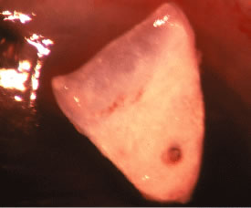 TUBE ENTRY. The tube is trimmed so that there is a bevel facing anteriorly and 2 to 3 mm will appear within the anterior chamber. After scrutiny for the ideal tube entry site, a 23-gauge needle is passed through the limbus to create a tight entry site. The tube tip should not be touching either the cornea or lens. Alternatively, a pars plana entry could be considered if a pars plana vitrectomy has been performed.134 After reforming the anterior chamber with balanced salt solution, the valved shunts should allow for fluid runoff. If the unvalved tube has been tied tightly so that there is no flow, 1- to 2-mm venting slits are made with a microblade within the tube proximal to the external ligature. This will allow for some outflow through the tube in the early postoperative period. RIPCORD SUTURE PLACEMENT. For the nonvalved shunts, the 4-0 nylon intraluminal suture is passed into the subconjunctival space of an adjacent quadrant (usually inferotemporally). This allows for easy removal postoperatively to fully open the tube for aqueous outflow. WOUND CLOSURE. A donor patch graft is placed over the tube to reduce the risk of tube erosion through the conjunctiva135 (Fig. 50). Potential donor materials include: sclera, fascia lata, and pericardium. The conjunctiva is repositioned to carefully cover the tube and overlying patch graft. For a limbal-based conjunctival flap, a two-layered closure of Tenon's layer and then conjunctiva is recommended.