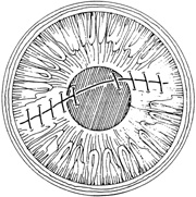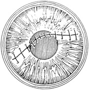 Fig. 8. Long, deep, and relatively tight peripheral sutures and shorter, shallower, appositional sutures near the central cornea may restore the normal corneal dome and surface topography.
