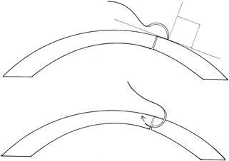 Fig. 7. Suture placement using a “no-touch” technique. Needle enters tissue perpendicular and is rotated by following the curvature of the needle.