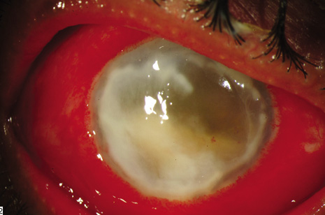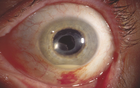 | Marked infiltration of the anterior chamber and vitreous cavity by polymorphonuclear