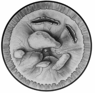 final visual acuity.12,15,22 RETINAL DETACHMENT The presence of retinal detachment remains one of the most serious factors effecting final visual acuity.23 The presence of retinal detachment at the time of initial evaluation occurs in 4% to 10% of patients, although the percentages have declined somewhat in recent years. At the time of surgery to remove retained lens material, retinal tears and detachment may also be discovered. Additionally, there can be significant comorbidities such as giant retinal tears, suprachroidal hemorrhages, and endophthalmitis. Proliferative vitreoretinopathy may occur and usually results in a final vision of 20/200 or less (Fig. 3). In general, retinal reattachment is still achieved in 90% of patients with complicated surgery from retained lens material. However, 31% of patients require more than one surgery. Only 48% of patients achieve final visual acuity of 20/100 or better.17,21,24,25 CYSTOID MACULAR EDEMA Cystoid macular edema is another important factor affecting final visual acuity. Although macular edema can occur from any lens surgery, prolonged surgery and phacoemulsification power can increase the incidence and severity. The occurrence of uveitis in retained lens material cases also increase the prevalence of CME and offers a poorer visual prognosis.15 ENDOPHTHALMITIS The incidence of endophthalmitis in eyes with retained lens material after cataract extraction is rare. However, the exact incidence is unknown. Patients present with signs and symptoms typical of endophthalmitis with ocular pain and inflammation. Hypopyon must be differentiated from the pseudohypopyon secondary to retained lens material. Typically, endophthalmitis produces a more cellular reaction in the anterior chamber as well as a fibrinoid reaction. The decision for surgical intervention versus medical management is unclear. No current studies have evaluated the diference in regard to final visual acuity. Due to the severity of the disease and possible confusion in differentiating the clinical picture, however, we feel that early surgical intervention is prudent in cases of suspected endophthalmitis in the setting of retained lens material. In a small case series, a majority of such patients achieved better than 20/400 acuity following vitrectomy and use of intravitreal antibiotics.26 |