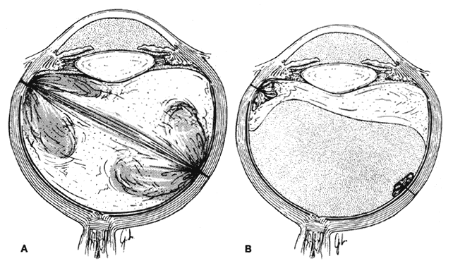 of the lens, vitreous hemorrhage, and retinal detachment caused