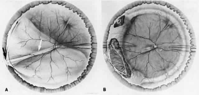 of trauma such as traction and rhegmatogenous retinal detachments, are