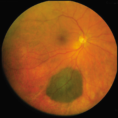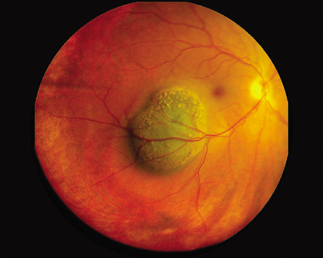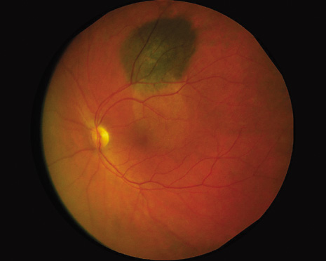nevus.13 Choroidal nevi are managed by periodic observation. It is estimated that 1 in 5,000 choroidal