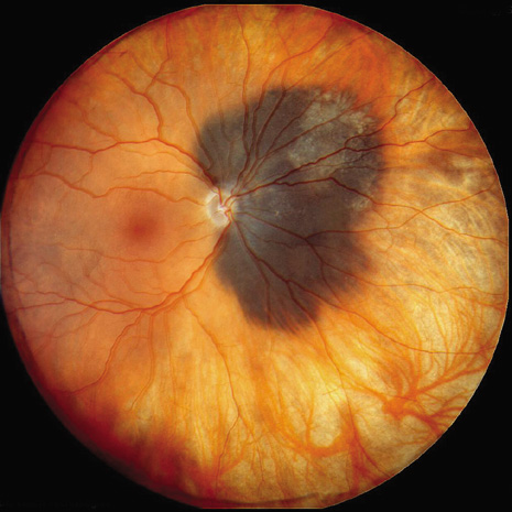 even large uveal melanoma up to approximately 12 mm in thickness (Fig. 3). 34 Shields and co-workers found that plaque radiotherapy for large melanoma