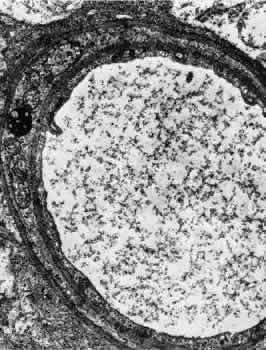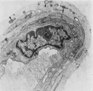 Venules are usually less than 20 μm in diameter.15 The media is composed of a single layer of cells resembling pericytes, containing poorly developed myofilaments and dense bodies. Elastin is not present. The adventitia contains little other than the basement membrane surrounding the pericyte (Fig. 5).