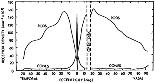 CONE AND ROD DISTRIBUTION ACROSS THE HUMAN RETINA